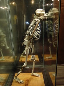 After a few weeks of trying to establish a new daily routine, I took time to visit the Ethiopian National Museum in Addis, where the remains of Lucy, the famous Australopithecus afarensis, are kept. Only a plaster replica is on display to the public. The discovery of Lucy in 1974 in the Afar region in Eastern Ethiopia, was significant because it gave evidence that humans were already walking upright 3.2 million years ago, when it is believed Lucy lived. She was actually named after the Beatles song, Lucy in the Sky with Diamonds, which was being played in the paleontologists’ camp the evening of her discovery. I knew the basic facts about her, the she was about 25 years old, very short: she measured about 1.1 metres (the height of a three year old child on average today) and weighted an estimated 28 kilos, or twice as much as an average three year old child. Knowing that, I was still impressed by her short size when seeing the reconstruction.