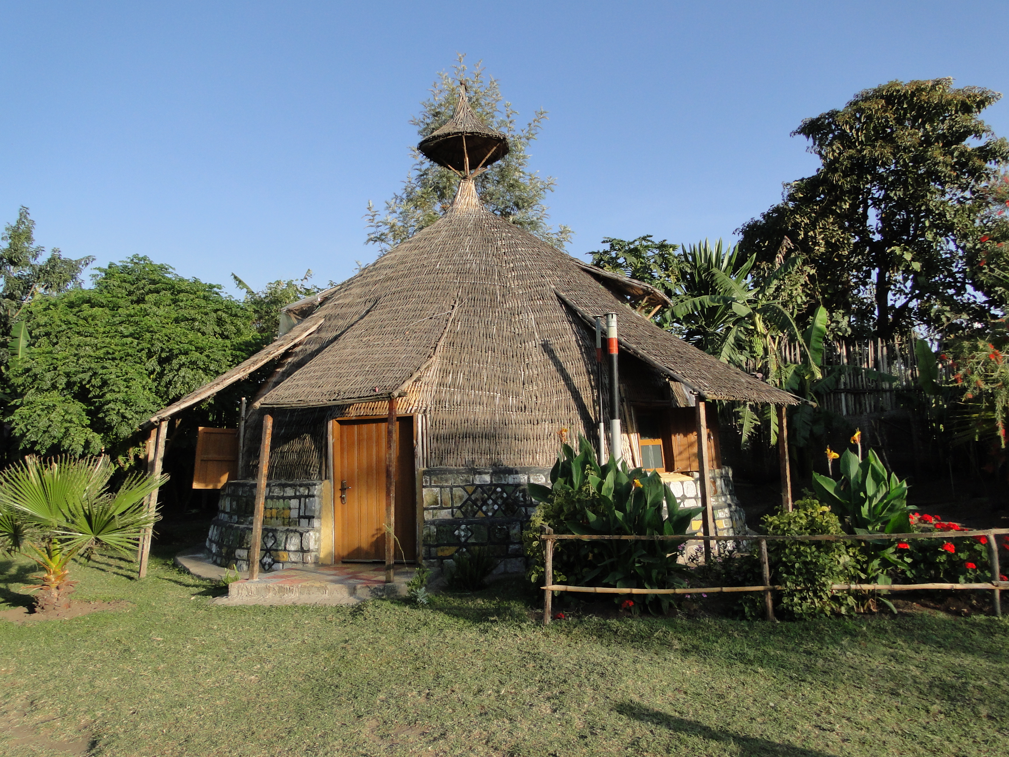 We are staying in a lodge run by a French Rasta family, who left Paris a few years ago to settle in rural Ethiopia. Our room is in a traditional Godjo, a circular house made mainly of straw and bamboo sticks. The place is simple but authentic, on the outskirts of the town. Shashemene itself is a small but lively local trade centre, where Rastafarians are still a minority. Many objects and pictures around the lodge remind us of Haile Selassie’s cult. There are photographs and painted portraits of him and his wife, Empress Menem, as well as various representations of the lion of Judah, the symbol he adopted for his reign. Marcus Garvey, their prophet, also features on the walls. Everything else is decorated with the three colours, Red, Yellow and Green representing Africa’s freedom and independence. Rastafarians also question the fact that Selassie is resting in the church of the Holy Trinity in Addis Ababa, but believe instead that as a godly figure he could not be buried.