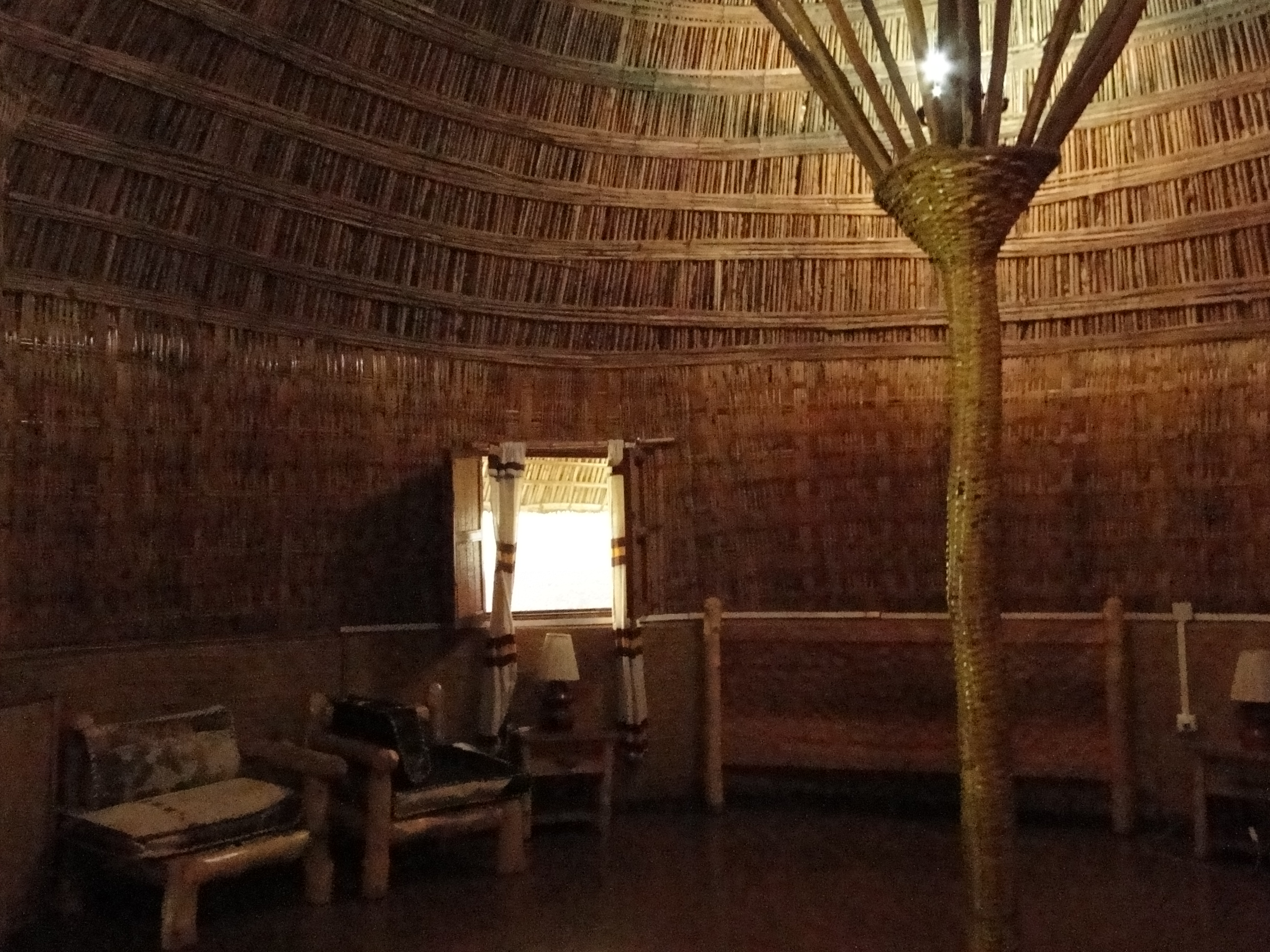 Many places around Addis make a good destination for a weekend trip. The Wenchi crater lake, located half way between the towns of Wolliso and Ambo, about 120 kms west of Addis, is one of them. From the capital, it takes about three hours to reach either of these towns, and another hour on a dirt track to get to the crater itself. As an overnight stay was required, we booked at Negash Lodge in Wolliso, by far the best known place to stay near the crater. Negash Lodge, located in a beautiful, almost tropical park full of wild monkeys, used to be a country residence for Emperor Haile Selassie. The rooms are located in individual huts, each one built in the authentic style of a different region of Ethiopia, while the main restaurant and bar are in what was Selassie’s house, a 1930s bungalow style house opening on to a wide patio. The place, a regular weekend retreat for city residents, is particularly interesting for having kept its mid-20th century style and features. Like many places in the highlands of Ethiopia, it also has a hot thermal swimming pool.