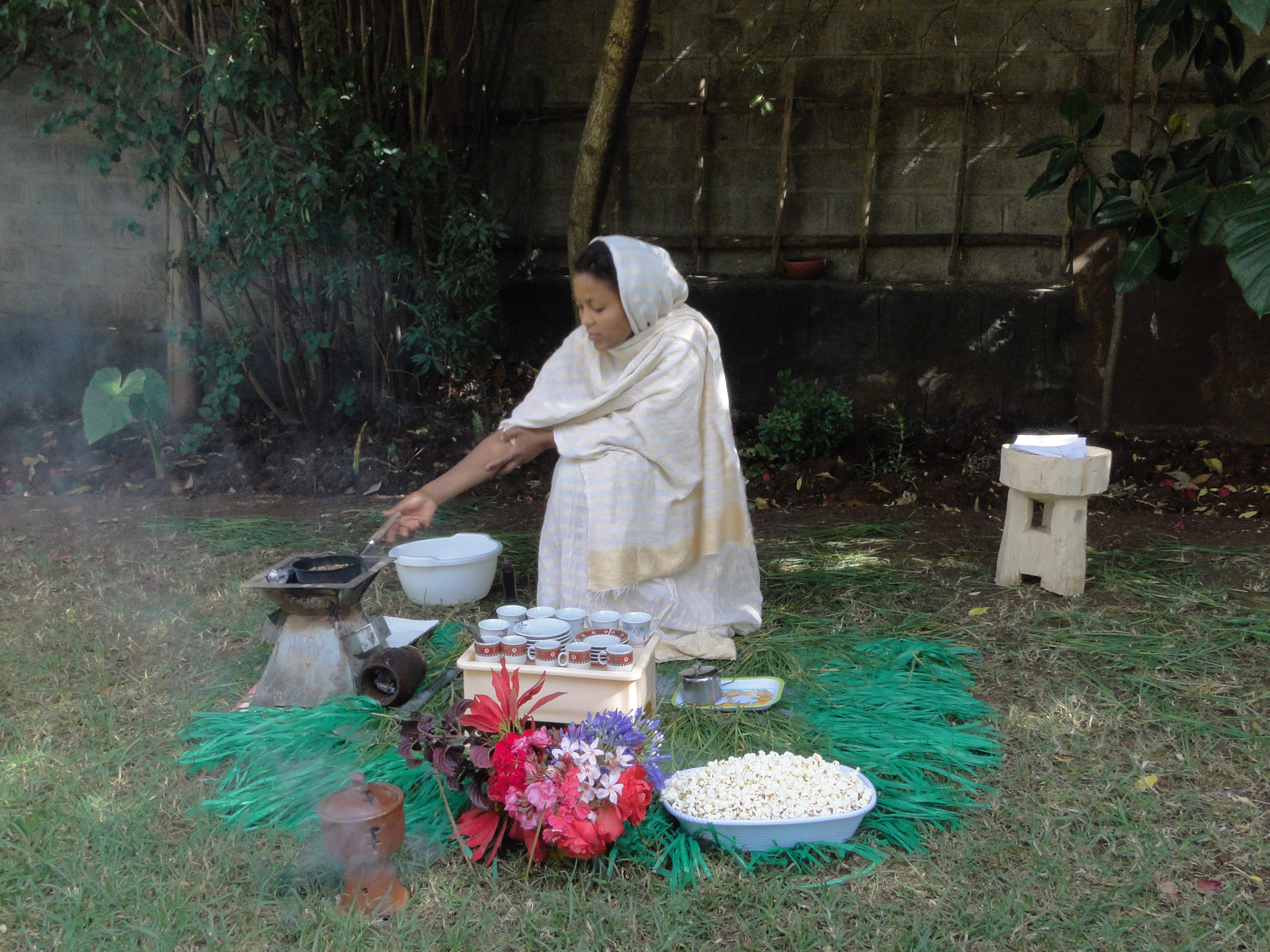 However, to my great surprise, I was greeted with a coffee ceremony organised by our maid and babysitter, as a welcome back gesture. It made my return to Ethiopia smoother. The ceremony took place in the outside courtyard, where they had laid grass on the ground, and put a low table surrounded by stools to prepare for it. They wore a traditional Ethiopian dress to make the coffee, according to the tradition here. As I explained earlier, the green coffee beans are first roasted on a small charcoal fire, before being ground by hand and boiled in a specific coffee pot. They had brought their own coffee cups and pot, as well as the coffee beans. It was a very generous gesture, and I was extremely touched by it. I still have to get used to managing staff at home, which makes me feel like I am running a micro-enterprise, but that’s a different story! I am learning in the process. It takes time to understand a different culture, to grasp the subtleties of relationships. We need to spend a lot of time quietly observing and listening, and use our instinct to try to understand the unsaid.