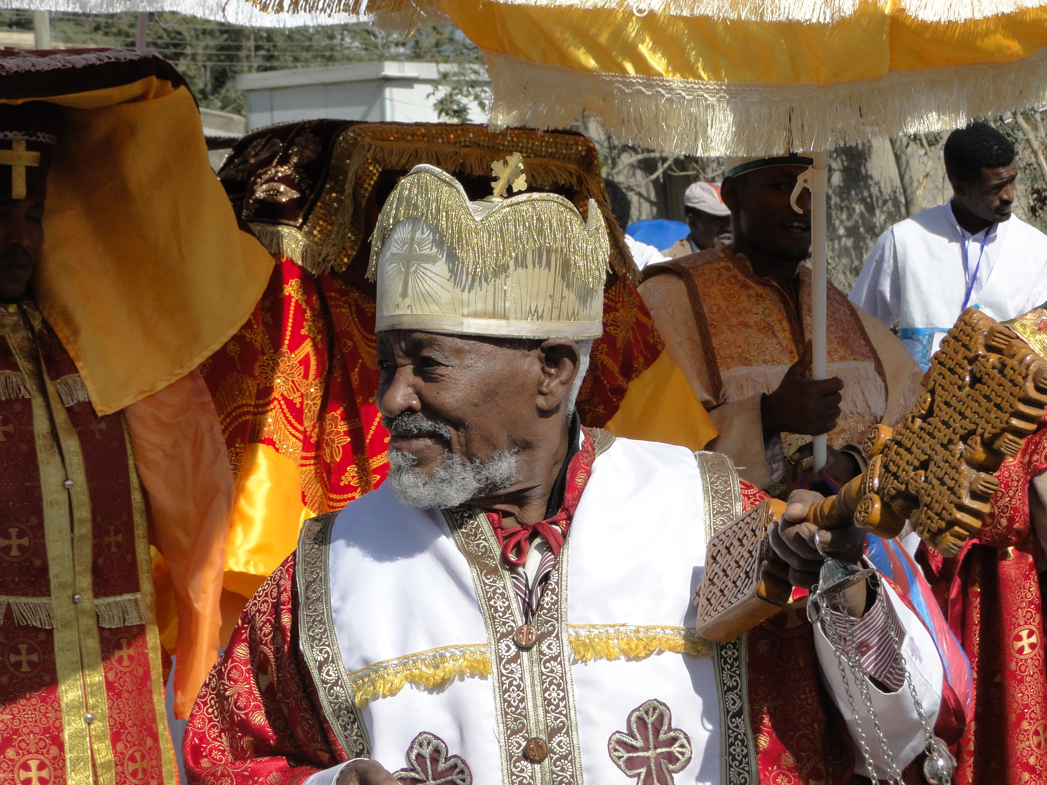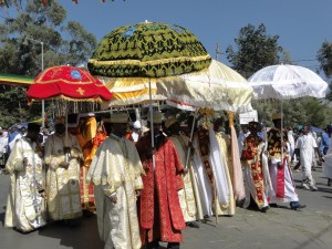 Tomorrow is Ethiopian Epiphany, known as Timkat. The city is getting ready for the celebration, one of the most important in the Ethiopian calendar. Everything stopped after lunch today, offices and businesses closed early to let people go to their local church. Epiphany is a very religious ceremony, celebrating the baptism of Jesus Christ. On that occasion, priests from each orthodox church wear their most ornate robe, carrying the cross and the Ark of Covenant, to march in a procession through the city.