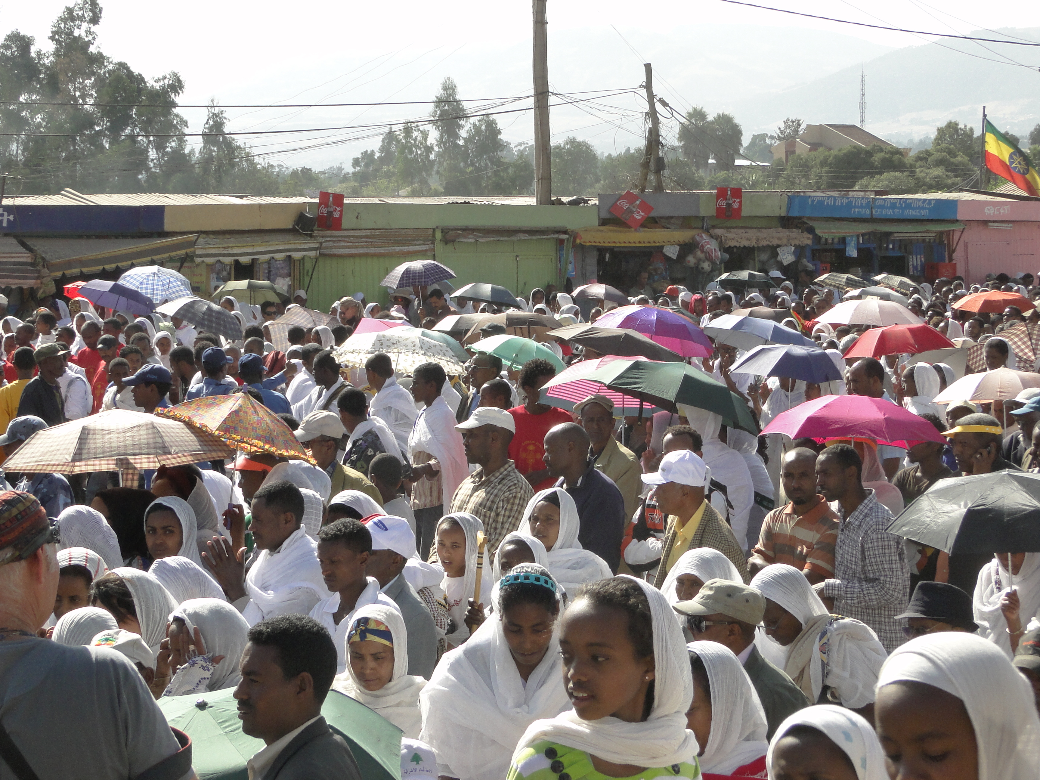As they proceed, followers join in, quickly taking over the streets of Addis. They are walking towards an area called Jan Meda, north-east of the city, where the Patriarch of the Ethiopian orthodox church will bless them with holy water on Epiphany day. Jan Meda is the largest enclosed open space in the city, used for religious gatherings as well as sport games.