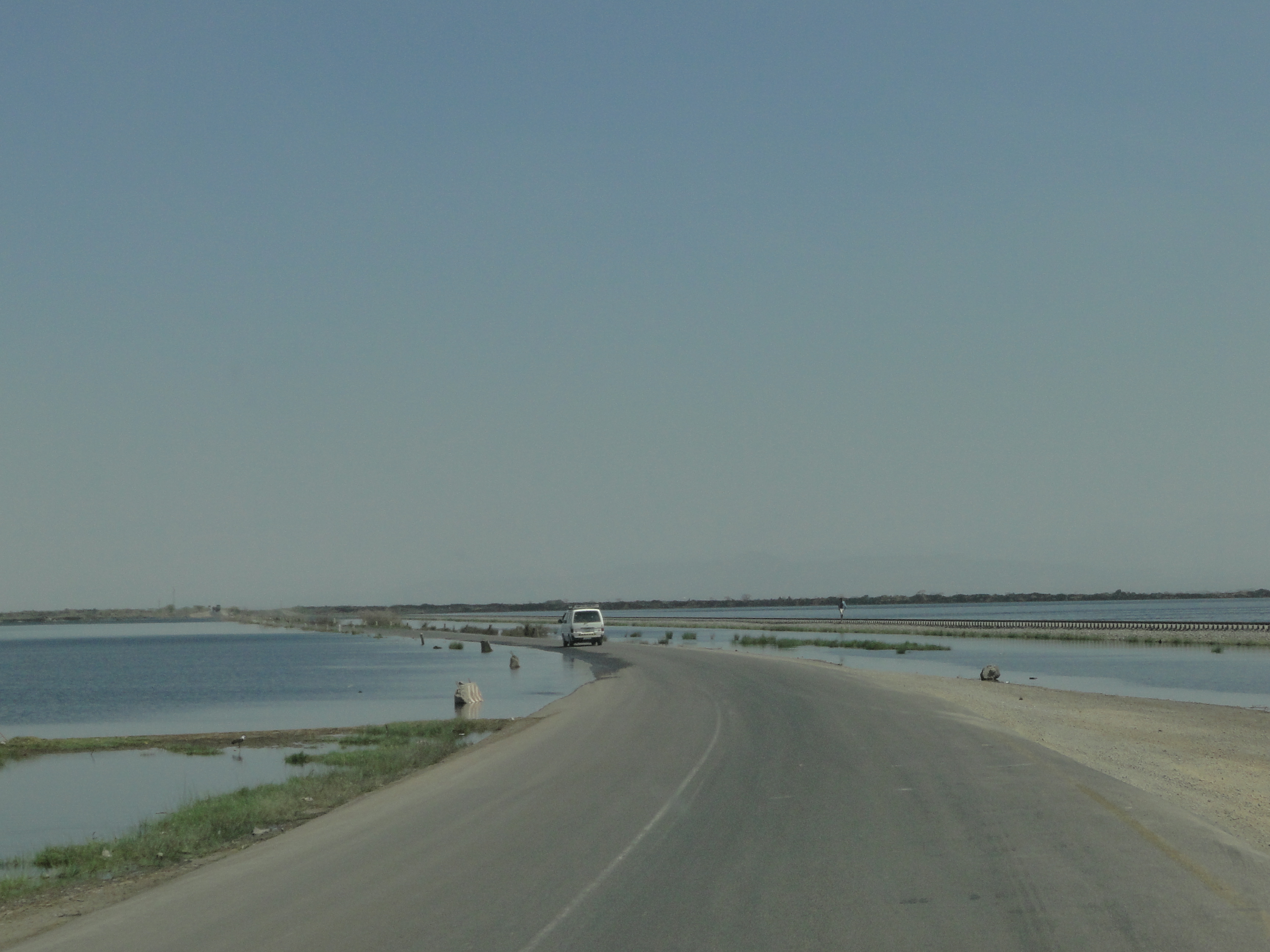 It takes just over three hours to drive from Addis to Awash, but the change of scenery and the variety in the landscape is impressive. On leaving Addis Ababa, we gradually go down from an altitude of 2500 metres, leaving behind the high plateau with its famous eucalyptus forest and grazing fields. The landscape becomes almost lunar with large craters of extinct volcanoes on both sides of the road. After a while, we drive through a semi-arid plain lined with acacia trees. It becomes much warmer, we’re now at an altitude of 750 metres. We encounter herds of camels along the way. Further on, we surprisingly come across a lake. The sight is almost unreal in the middle of this dry land, a narrow road goes across it, it looks like it was just flooded, but it is probably like that all the time. Along the road, we can from time to time spot the old train track linking Addis Ababa to the port of Djibouti. It was built by the French about 100 years ago, and will soon be rehabilitated with the help of EU funds. Once we have crossed the lake, we are very close to Awash, and the gate to the National Park.