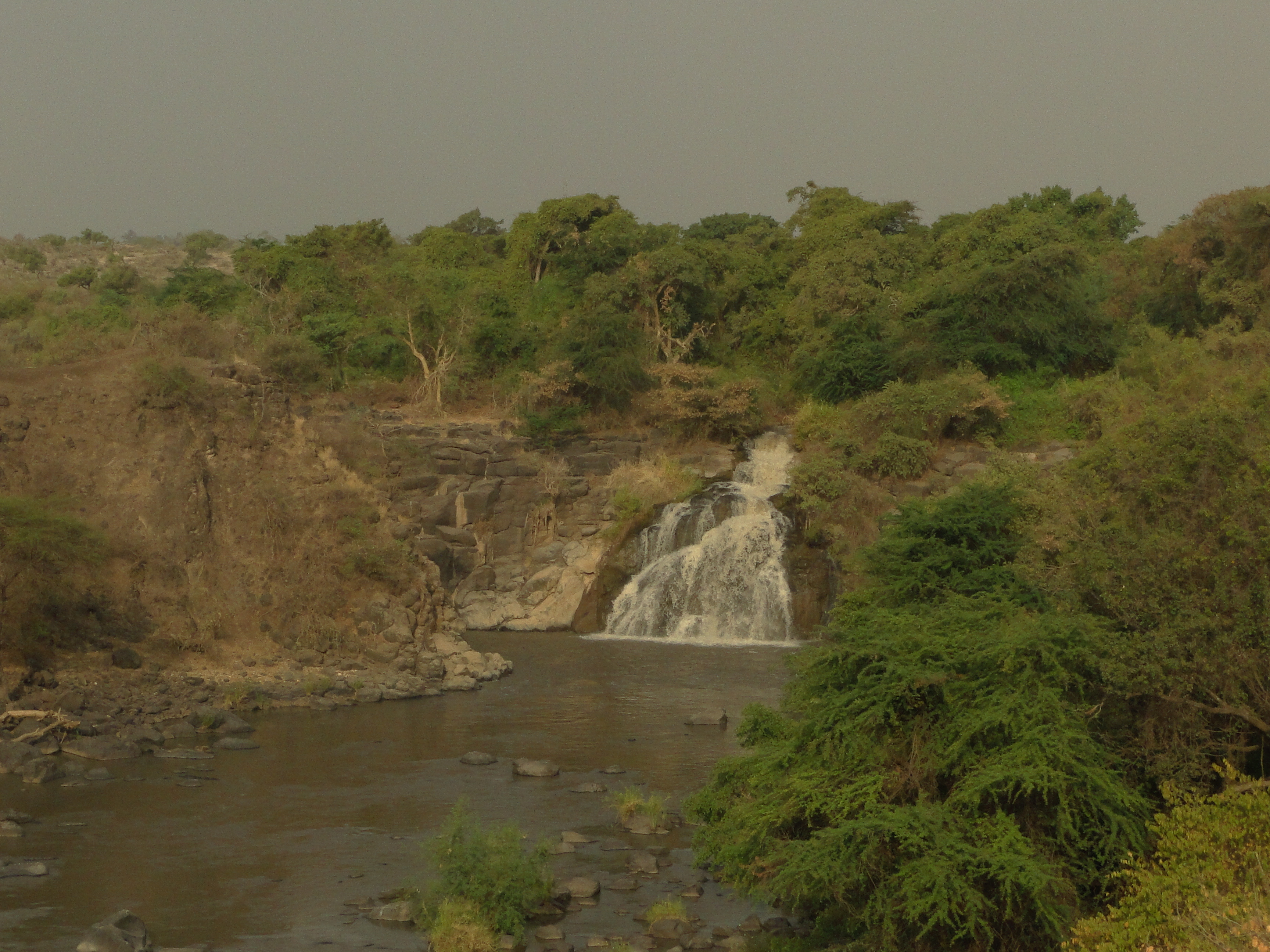 On my first morning in the lodge, as I got up a baboon was sitting on the floor of my room! I was so surprised that I scared him out with a loud scream! I later found on the balcony, a pair of socks he had taken and left behind when running away. We stayed in the main lodge inside the park, the relatively new Awash Falls Lodge, built on the edge on the gorge and overlooling the Awash river falls. The setting was spectacular. On entering the Park, we first go through ten kilometres of dry and dusty scrubland, before reaching the green valley around the Awash river. This lush area is an unexpected sight in the middle of the semi-arid park.