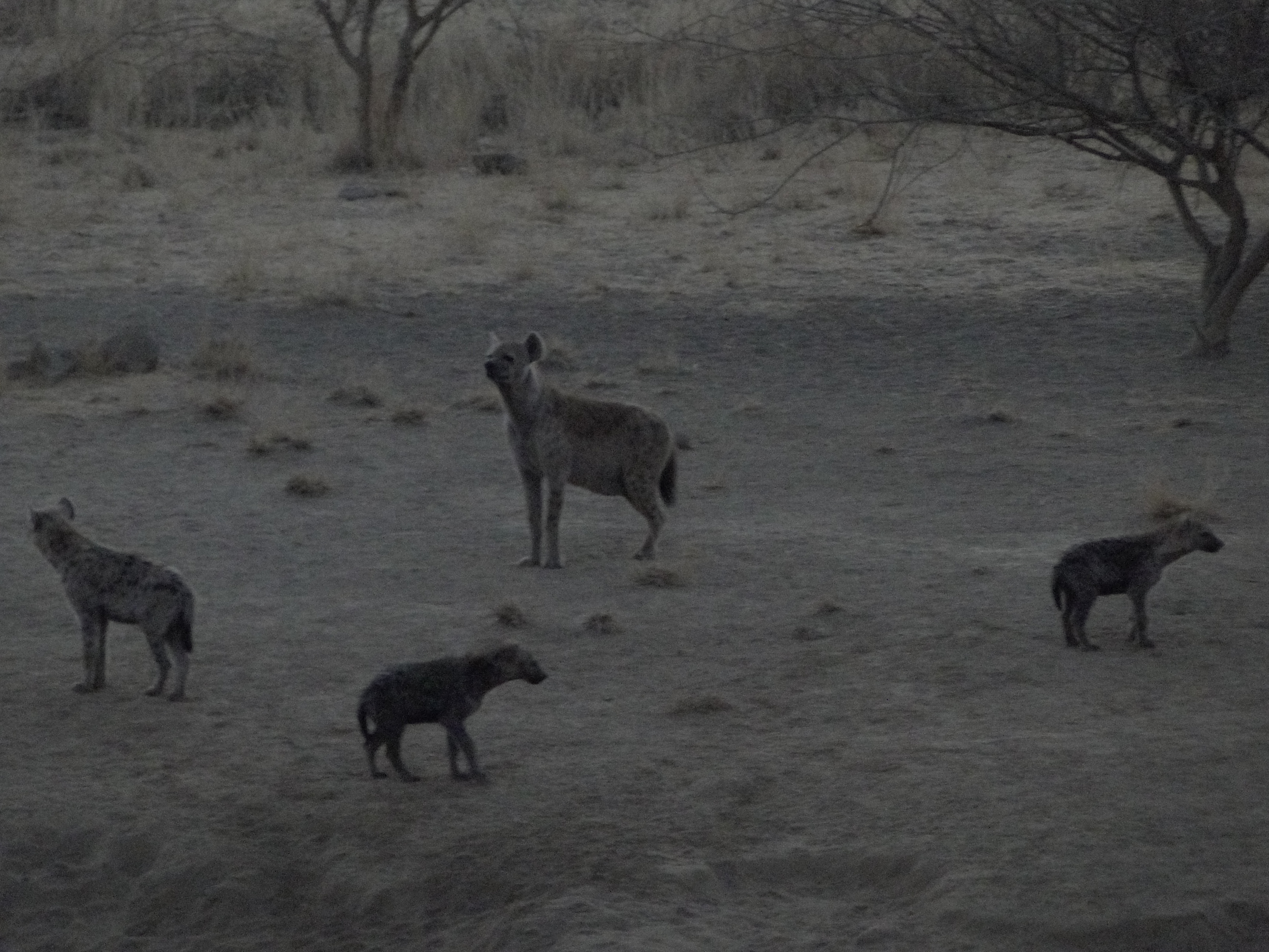 During our stay there, we go for walks along the river down in the gorge. We come across baboons playing and jumping on trees, we subrepticely notice gazelles gracefully crossing a path and we spot a number of crocodiles in and out of the water. They are difficult to see at first as they merge with the rocks, being of exactly the same colour, but they are an amazing sight! The next short trip is a visit at dusk to the hyena cave, near the footslopes of Mount Fernale, the extinct volcano part of Awash National Park. It is a great moment. We sit in silence about 20 metres away from the cave, watching the sunset and waiting for the hyenas. It takes about half an hour. Once the sun has completely disappeared behind the horizon, the hyenas punctually come out. First a couple of warthogs, who live in the same cave, make their appearance. They are soon followed by a family of hyenas. The little ones play around under the watchful eyes of their mother. We all feel a little scared, having been fed in our childhood with many stories about fierce and voracious hyenas. But they are there in front of us, paying little attention to our not-so-discreet presence. Hyenas are quite common in Ethiopia. Even in the outskirts of Addis, we can hear them howl at night.