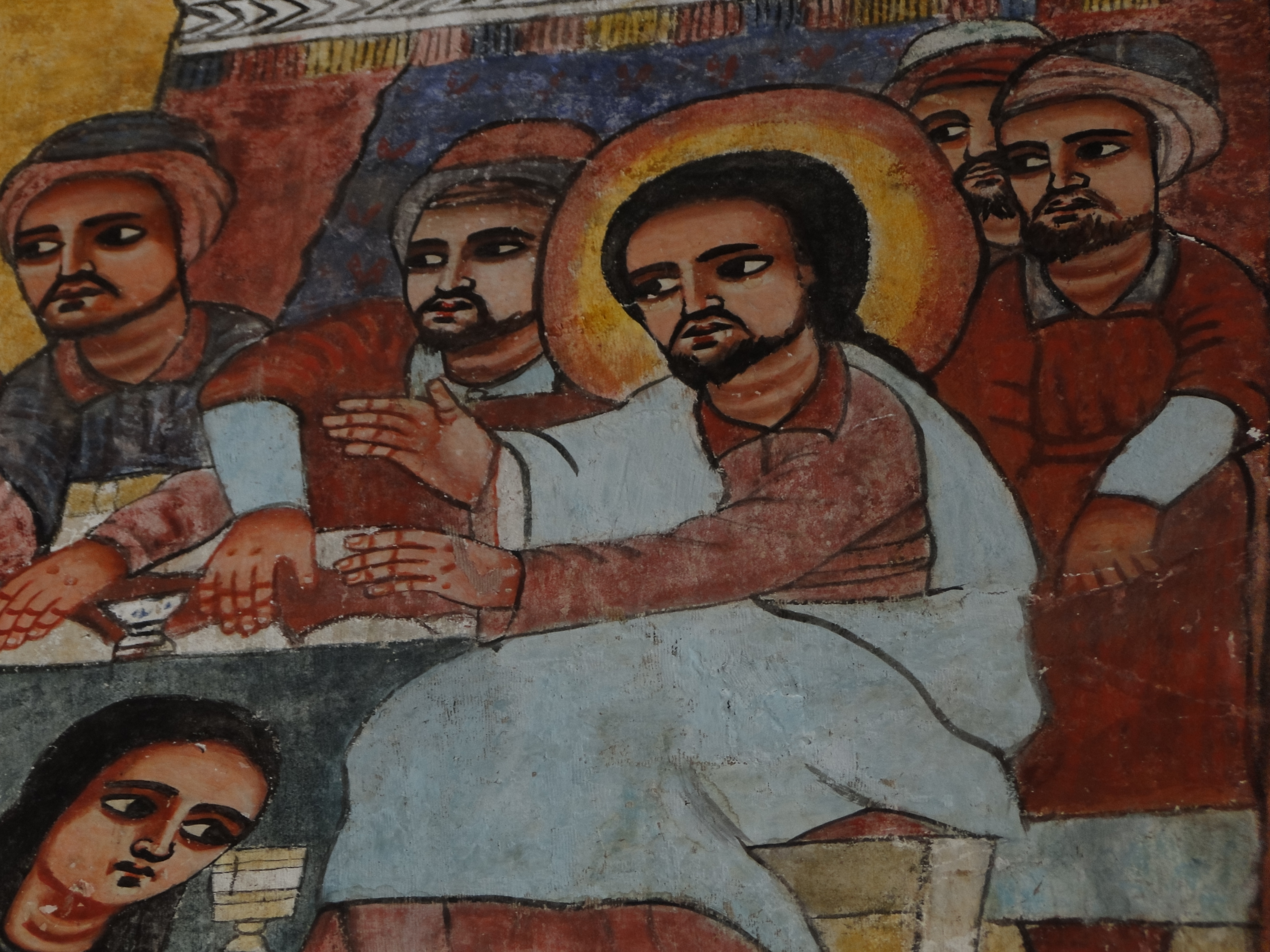 As we approach the jetty, we suddenly see the majestic gate leading up to the monastery. The sight itself is very beautiful and reminiscent of the Mediterranean, somewhere between a Greek or a Southern Italian island, with the tall trees, dry bushes and the monastery made of a similar stone colour. Inside, the walls are decorated with frescoes depicting the main episodes of Jesus’ life, the four evangelists, as well as scenes from the Old Testament. They have the naive quality found in the early Renaissance frescoes in Italy, but with the distinctive Ethiopian faces and striking black eyes. I could have stayed there the whole day so beautiful the spot was, except that there is little else apart from the monastery itself.