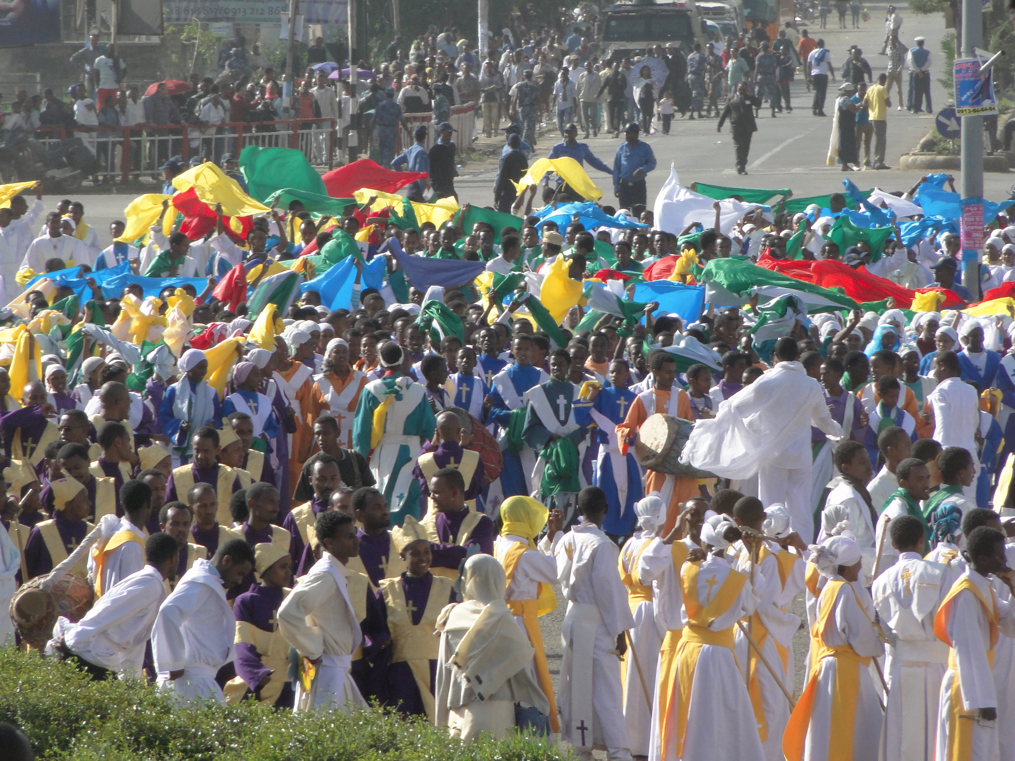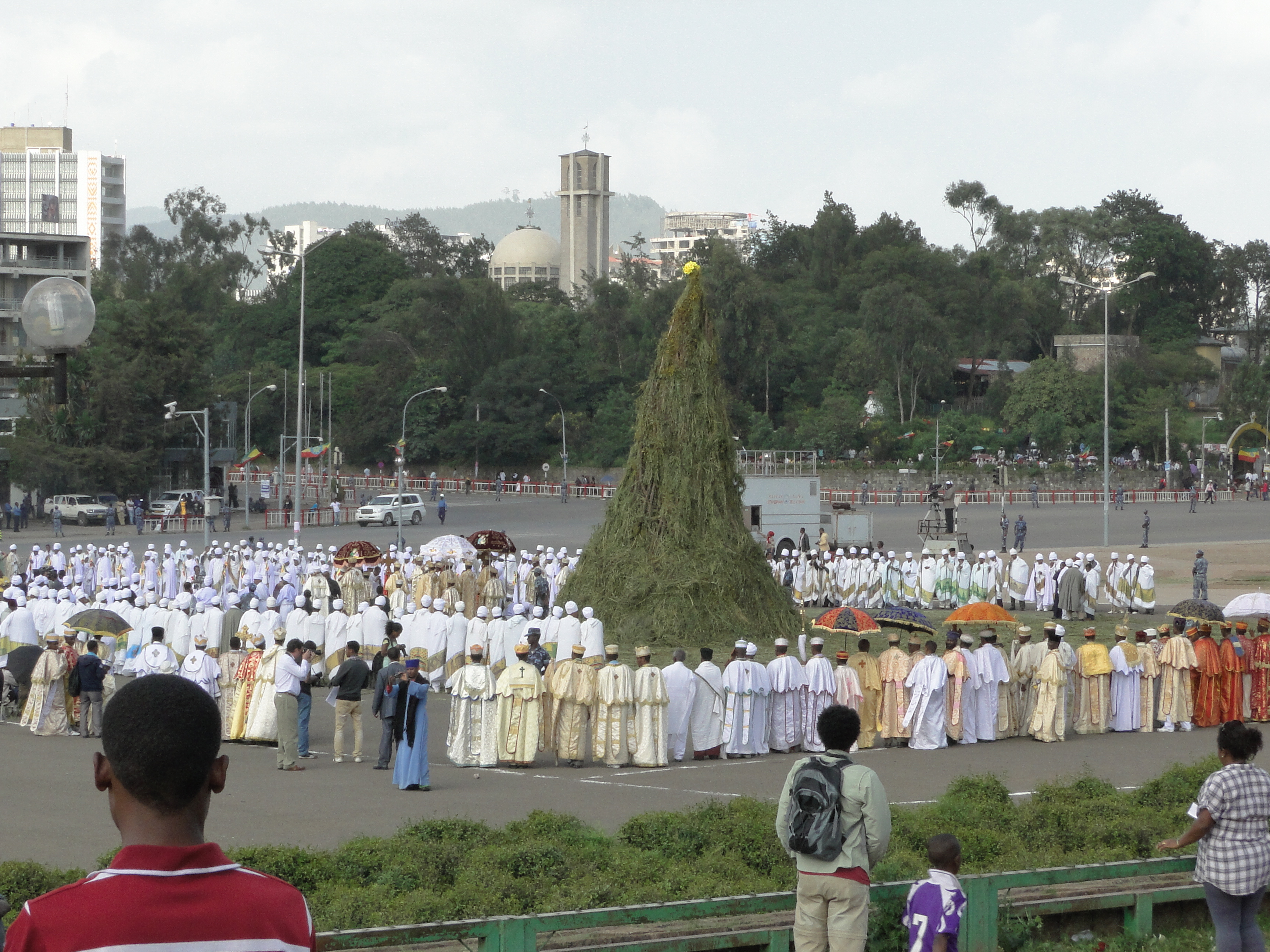 A couple of weeks after the New Year celebration, everything stopped again for Meskal, another important holiday in Ethiopia on a par with Christmas in Europe. Meskal is a christian celebration commemorating the finding of the true cross by Helena, mother of Roman emperor Constantine, the first emperor to convert to christianity in the 4th century. Every year, a big ceremony takes place on Meskal square, the main square in the centre of Addis Ababa, where the finding of the cross is re-enacted and a tall bonfire lit up. People say that if the burnt bonfire falls on a given side, it is a good omen and good things will happen in the coming year.