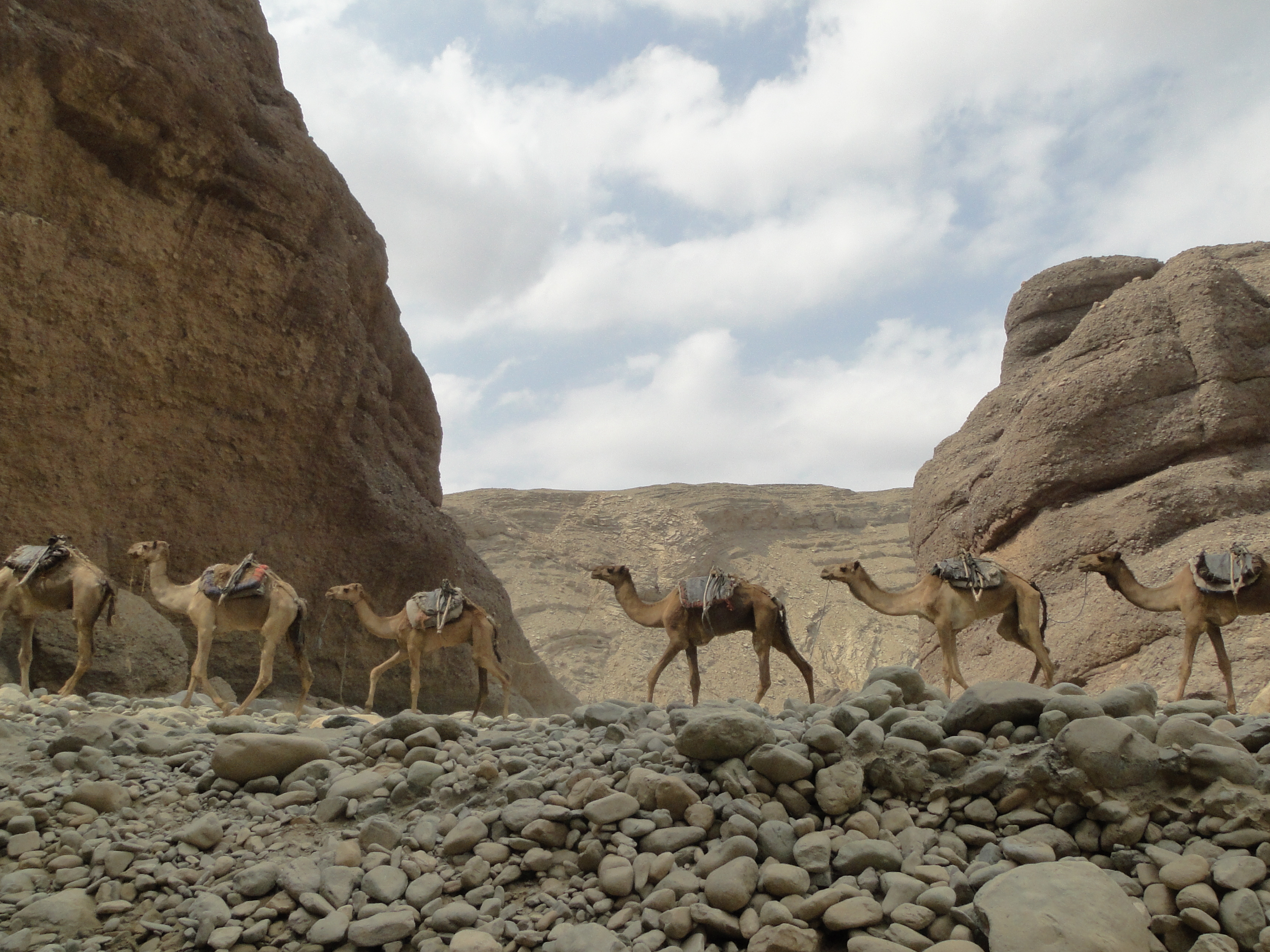 At dawn after our first night camping outside, I was woken up by some tinkling noise. I opened my eyes just in time to see a camel caravan passing by our makeshift camp. It was a biblical vision. In the half-dark, I saw the shadow of the camels walking at a slow pace against a backdrop of gentle hills slightly lit up by the moon crescent. I could not believe my eyes, it was a picture straight out of my childhood when in the exotic stories read to me, camel caravans were the vision of a far away land in bygone times. That brief instant was like an image from a book. Maybe African children feel the same way when they see snow for the first time.