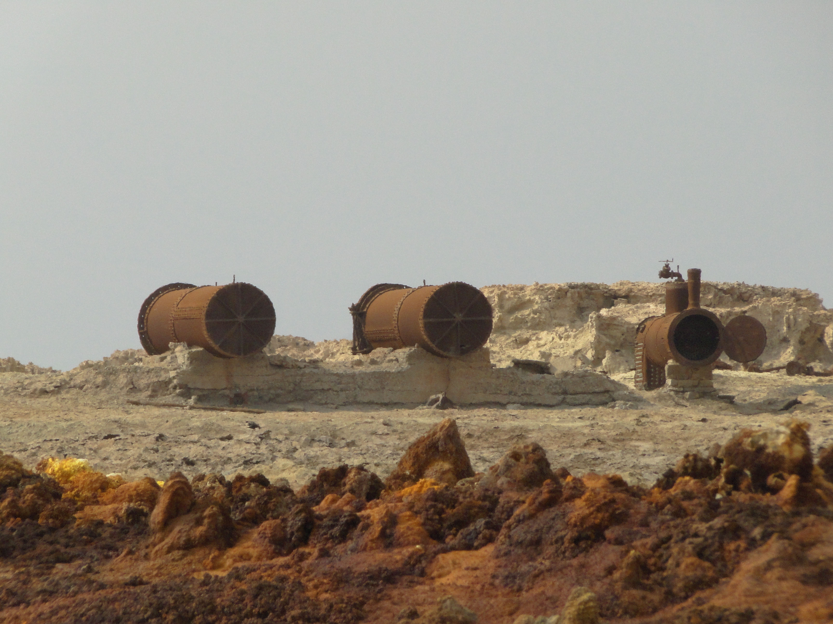 The salt deposits were the result of reccurent flooding from the Red Sea, when the ongoing rifting process in the East African Rift Zone allowed water to enter from the sea. Following each flooding episode, partial or complete evaporation of sea-water resulted in thick deposits of salts which are highly stratified. The Dallol deposits include significant bodies of potash found directly at the surface. Because of the presence of easily mined potash, which is used as fertiliser, the area has attracted commercial interest ever since the beginning of the 20th century, when Italian explorers undertook a number of expeditions in the Danakil and recognized the surface deposits. Consequently, an Italian mining company established itself and started mining and exporting potash and salt which were initially transported by camel and then by rail to the small Eritrean port of Mersa Fatma on the Red Sea. They mined potash in the area until the 1930s. After a long dormant period, interest in the area was renewed when a few years ago, the Ethiopian government granted licences to a number of companies, mainly Canadian, to mine potash. They include Ethiopian Potash Corporation (EPC) and Allana Potash Corp, both traded on the Toronto stock exchange. Australian mining company, BHP Billiton, which also held a licence recently announced its withdrawal from the project. Since the 1998-2000 war between Ethiopia and Eritrea triggered by a border dispute, the Danakil, located on the Eastern border between the two countries, has been a zone of heightened tension. The Dallol potash will have to be exported through the port of Djibouti using the new asphalt road currently being built.