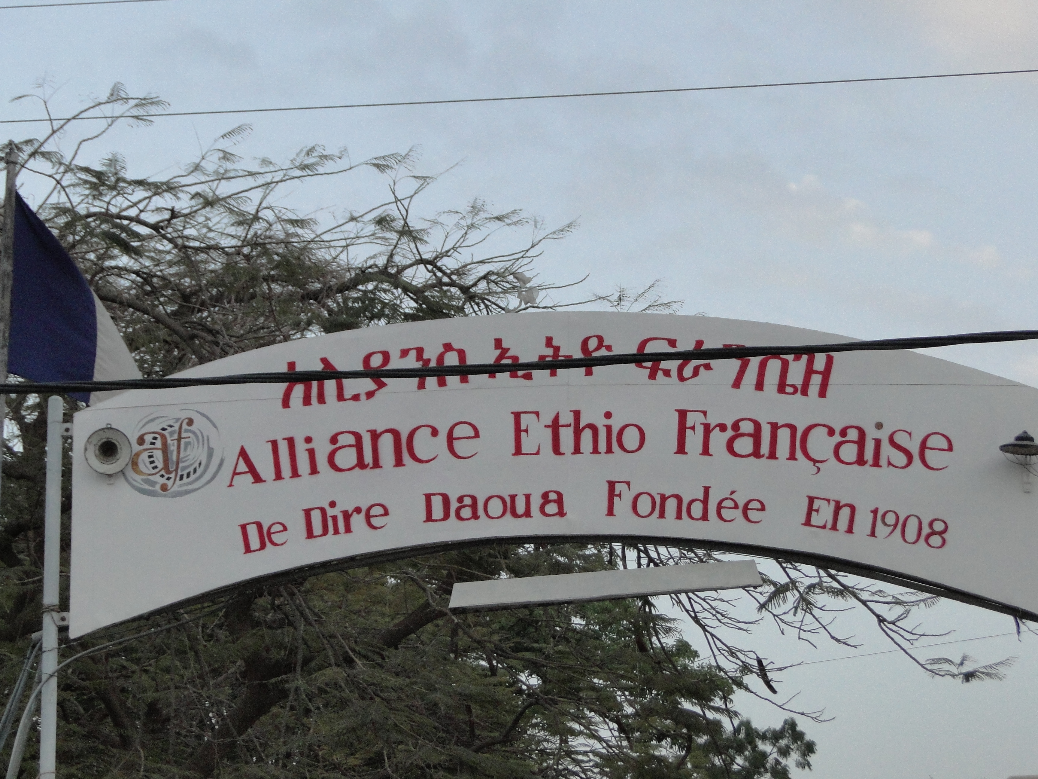 For the French in particular, Dire Dawa is full of historical references. Not only this new city was a major stop on the train line half way between Addis and Djibouti, but it was also the heartbeat of the Chemin de Fer Franco-Ethiopien, the company running the train line which after Djibouti’s independence from France became the Chemin de Fer Djibouto-Ethiopien. In Dire Dawa, the train company employed and supported generations of workers who were taught to run and maintain the engine and the track. One of the conditions to get a job there was to speak fluent French, which was taught at the Alliance Française de Dire Daoua. The Alliance, which became an institution in the city, has remained a vibrant cultural and social centre even though the train stopped running in 2009 and there’s less of a reason to learn French today. The day we visited it (late on a saturday afternoon), the wide courtyard was packed with locals (mostly men) watching a football match. The sight was quite entertaining: on the outdoor theatre stage, they had installed two old fashion TV boxes to be able to simultanuously watch two different games. The football fans could hardly follow the game on the tiny TV screens, but that didn’t stop them from enjoying it!
