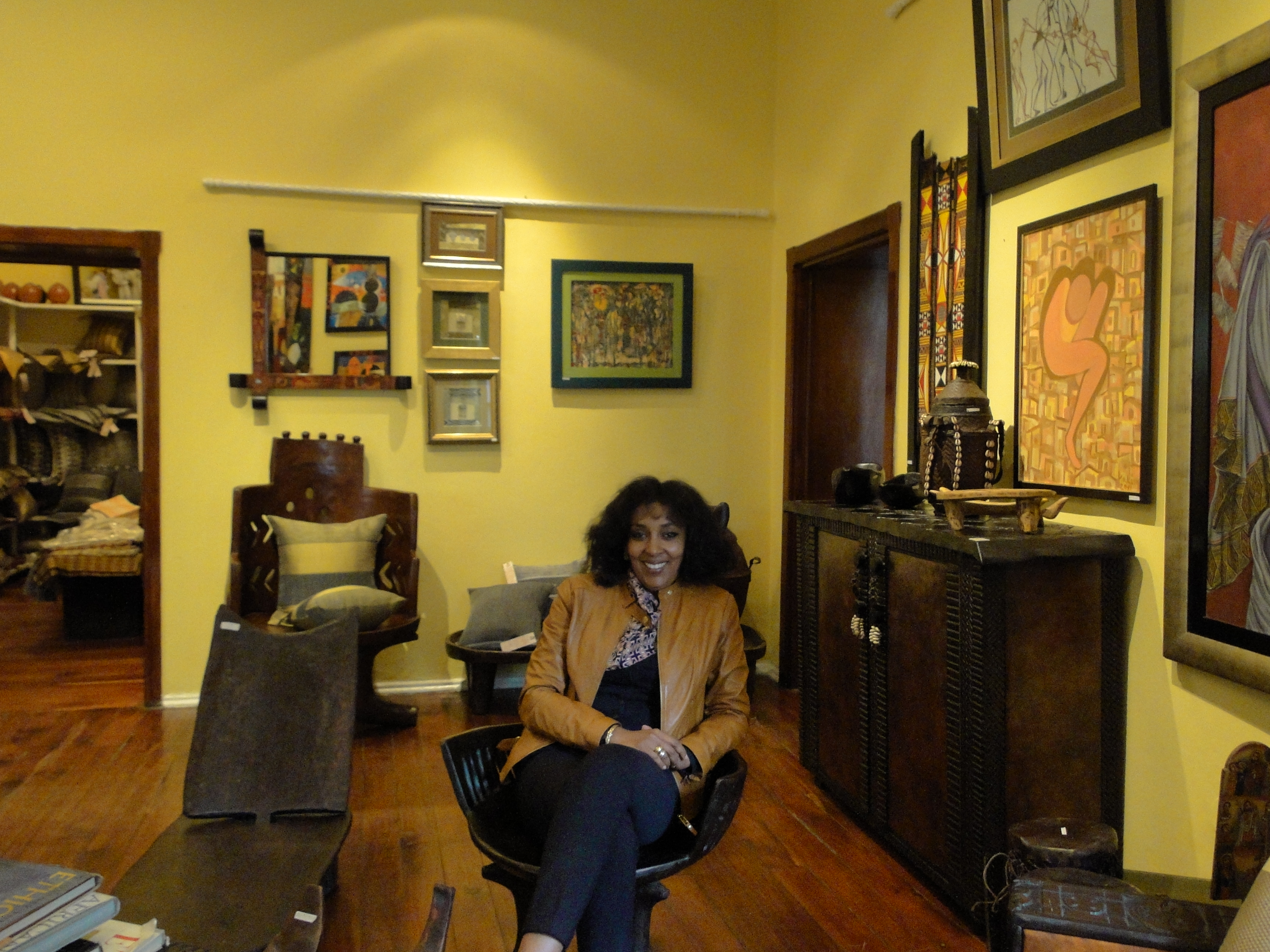 Selamawit and Saba Alene are the two sisters running St George’s gallery, probably the most prestigious gallery of Ethiopian art and antique furniture in the country. Their gallery has become even more of an institution since Bill Clinton visited it a few years ago. The Alene sisters started their business against all odds in the early 1990s. At the time, Ethiopia was coming out of more than fifteen difficult years under the Socialist Derg regime, which pushed a whole generation to emigrate to the US and Europe in search of a better life. Fresh out of college, the two sisters wanted to follow their passion for antique furniture and art, which was still considered as superfluous then. “People viewed paintings and decorative pieces as frivolous objects they didn’t need,” said Selamawit. They started anyway by restoring old furniture pieces which sold well, and a few years later they developed their own line based on traditional Ethiopian style. Today, their line of furniture has become very popular, even more so since the recent restriction on sales of antique furniture to protect Ethiopia’s heritage. Last year, they went a step further by opening their first international gallery in the US to meet the increasing demand from customers there. Saba is currently based there to personally run the new gallery while Selamawit stays in Addis.