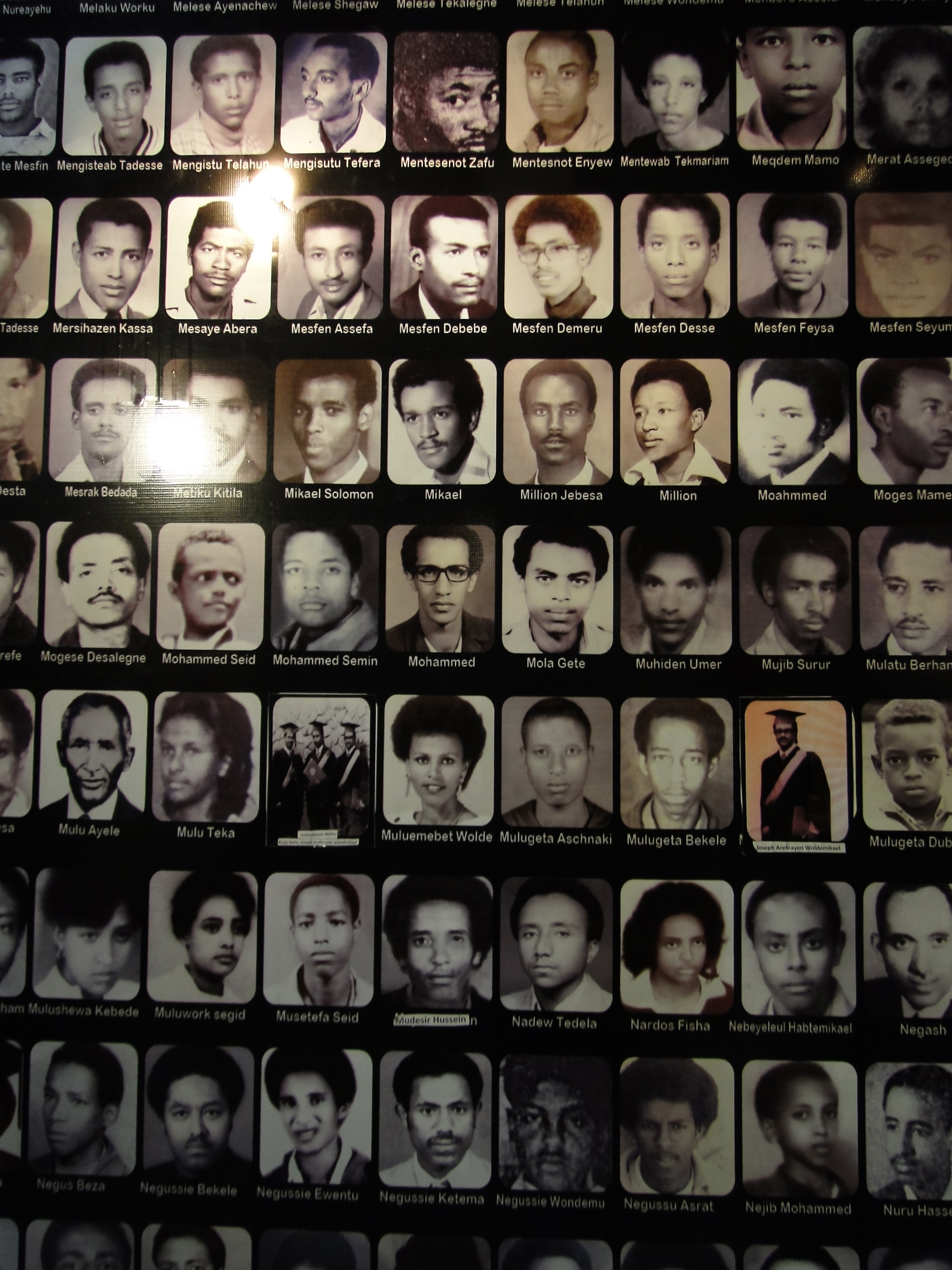 However, a strong opposition was voiced from the onset and the following two years (1975-1977) are remembered as a period of civil conflict and harsh violence on all sides, later described as the Red Terror. During that time, the Derg government unveiled its brutal methods and murderous techniques (some of them learnt from the Stasi in former East Germany) to get rid of unwanted opponents. Wanting to know more about it, I went to visit the Red Terror Memorial, a new memorial/museum which opened in Meskel Square in Addis in 2010, to commemorate the many victims of the infamous regime. The Memorial is the result of an initiative from former victims and close relatives of the victims who collected archive material, photographs of the deceased and testimonies to create the museum. They give their time to take visitors around and give explanations. Entry is free of charge, but donations are welcome to continue the work. I found it very interesting as well as profoundly touching to see the photographs of the time. Beyond the horror of the crimes committed against humanity, what surprised me was how little the urban landscape of Addis Ababa had changed in 40 years, another evidence of the huge economic set-back brought by the regime.